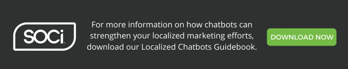 If you need to be convinced further, SOCi SmartBot also combines advanced machine learning and natural language processing to deliver a localized and conversational chatbot experience — across every location. Instantly deploy conversational chatbots across 1000s of local Facebook Messenger accounts, Google My Business accounts, or enable SMS text functionality and then embed it on other channels including local websites, email, and SMS to capture traffic from all over the web. What are you waiting for? It’s time to start crushing your localized marketing goals, and SOCi SmartBot is here to help! For more insight into how SOCi can give your business the tools it needs to dominate other areas of localized marketing, request a demo today!