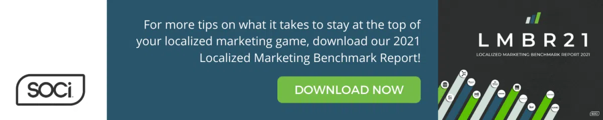 Now that you understand what it takes to create and implement a winning localized marketing strategy, it’s time to get started. As we kick off the new year, your multi-location business needs to realize what it takes to dominate the world of localized marketing. There’s a lot to keep in mind, from getting your local teams on board to practical training, budget management, and more. As we mentioned previously, finding a platform that allows both corporate and regional teams to manage marketing efforts under a single login is essential. That’s where SOCi comes in.
