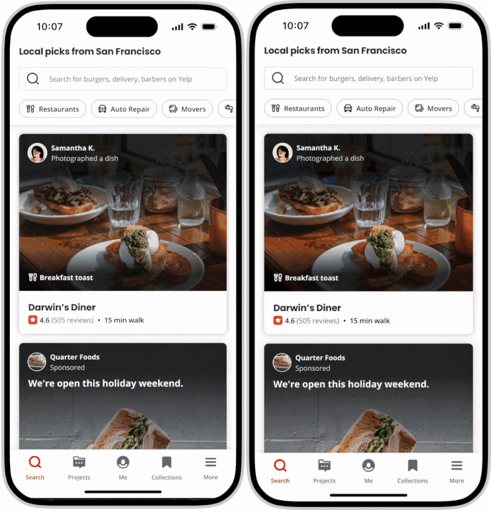 The photo-forward interface in Yelp’s home feed should help to remind businesses that photos are one of the most powerful and engaging elements of any business profile. Yelp says the updated feed will “spotlight high-quality visual content” to help users find the right business.