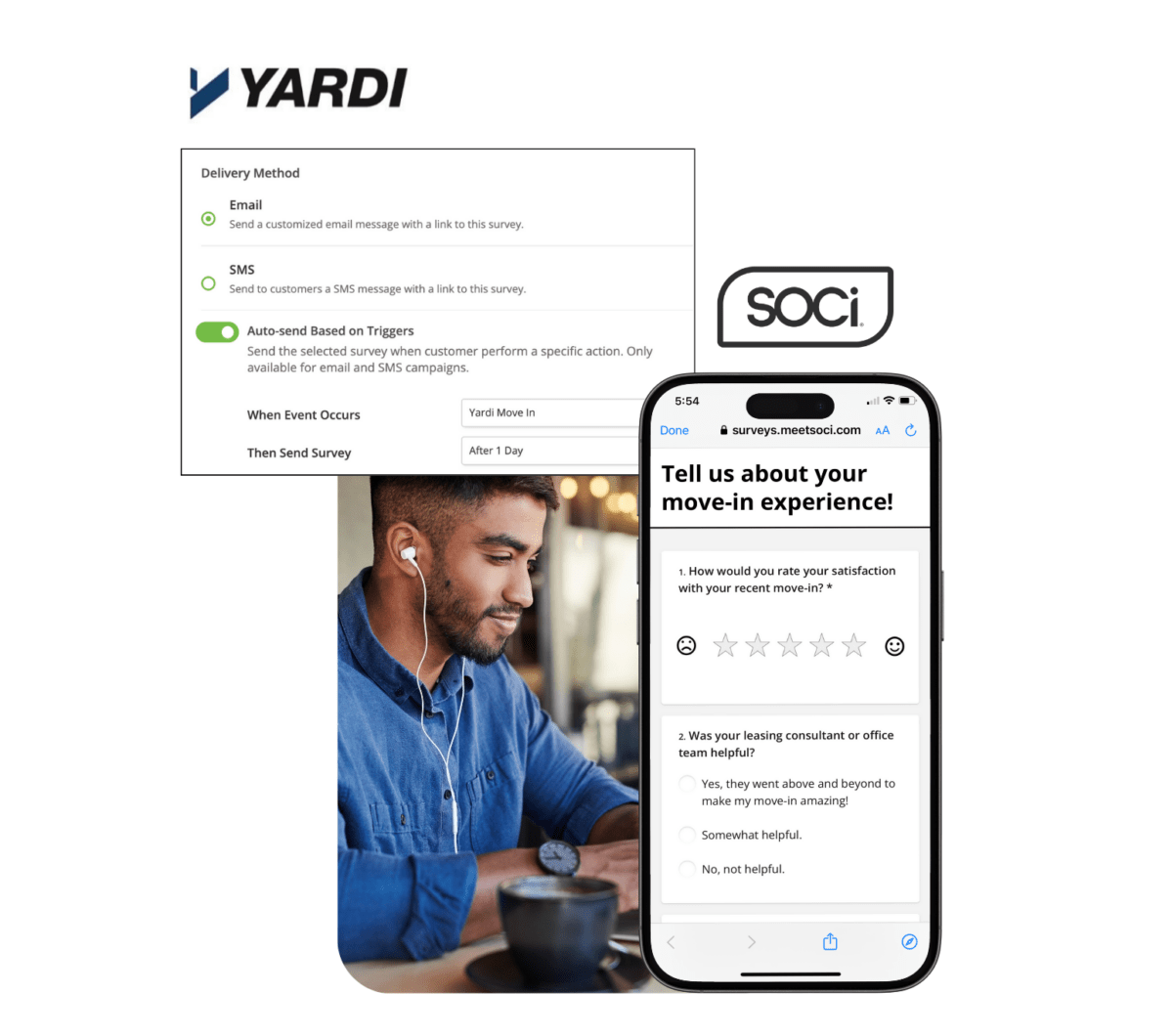 The Yardi Integration represents a significant enhancement to our SOCi Surveys product. This integration enables the automatic sending of surveys in response to specific triggered events (move-in, move-out, maintenance, renewal) occurring within a customer’s Yardi instance. By leveraging data and events from Yardi, a leading property management software, SOCi Surveys makes resident feedback collection more timely and effective for property management companies.