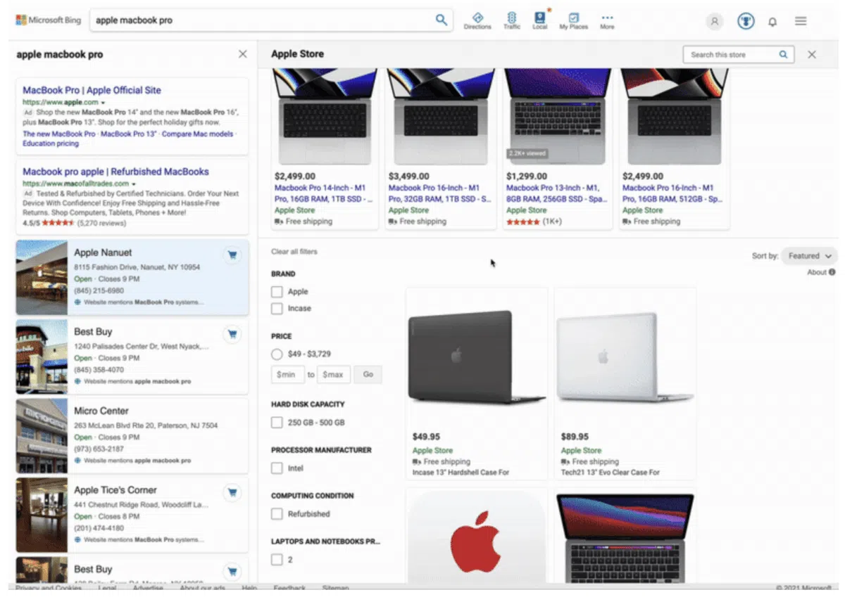 Taking a tip from Google, Bing has introduced a feature that lets users search the store inventory of local businesses. Bing now lets users search for specific products or product categories in search and then select the Maps tab; users can also search for products directly in Bing Maps. Where product inventory is available, Bing will display select products in the business profile along with a “Browse Products” button that opens up Bing’s shopping interface. Businesses can qualify to have their store inventory listed by using product markup or running Bing’s version of local inventory ads.